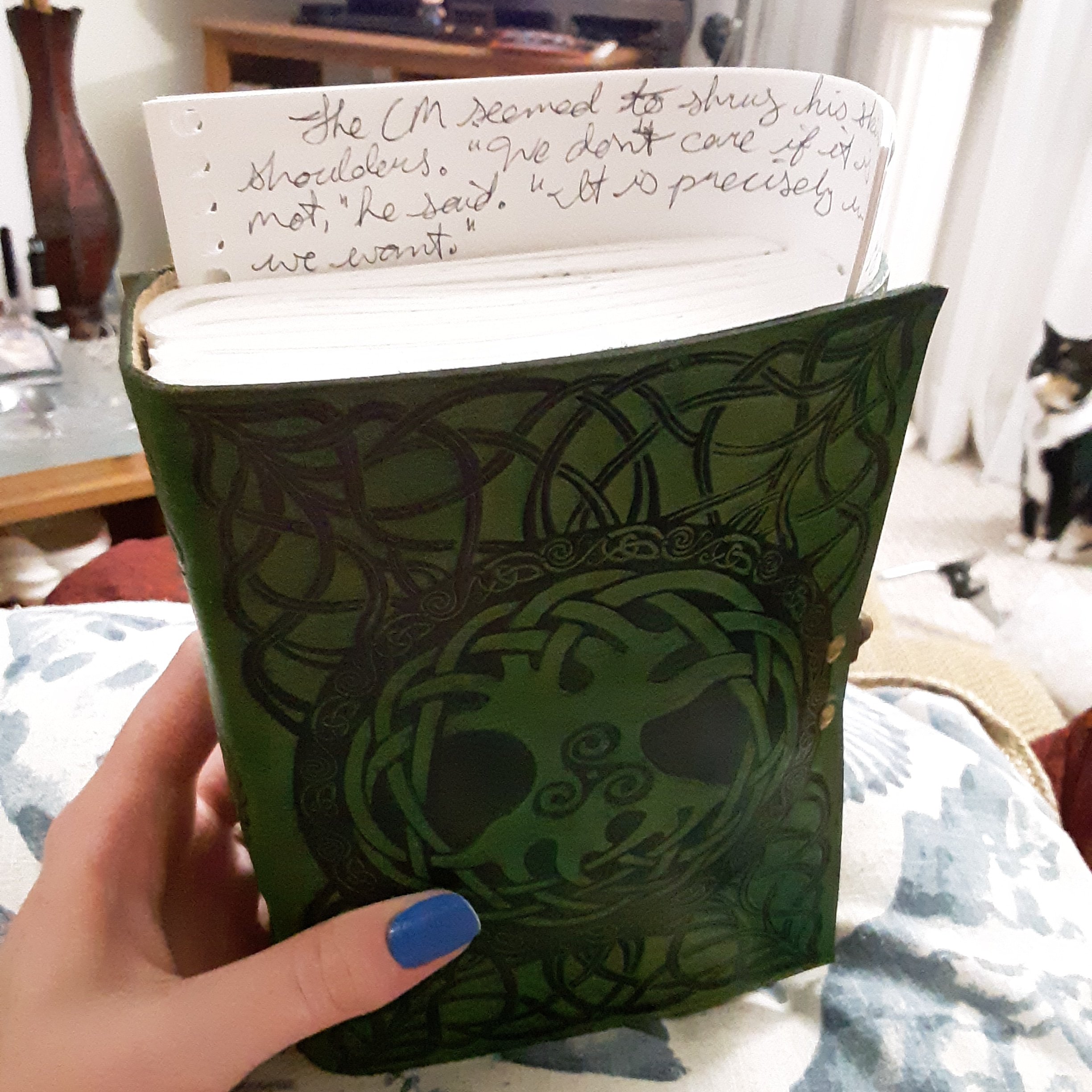 This is a handmade leather journal from Poetic Earth. They usually frequent the Bristol Renaissance Faire I attend during the summer, but with Covid shutting everything down, they have closed the gates. I’m crushed, but I will go on. Writing in this journal gave me a sense of nostalgia for the musty, ancient dwelling of the book binders at Bristol. I am very excited to go back and purchase another journal.