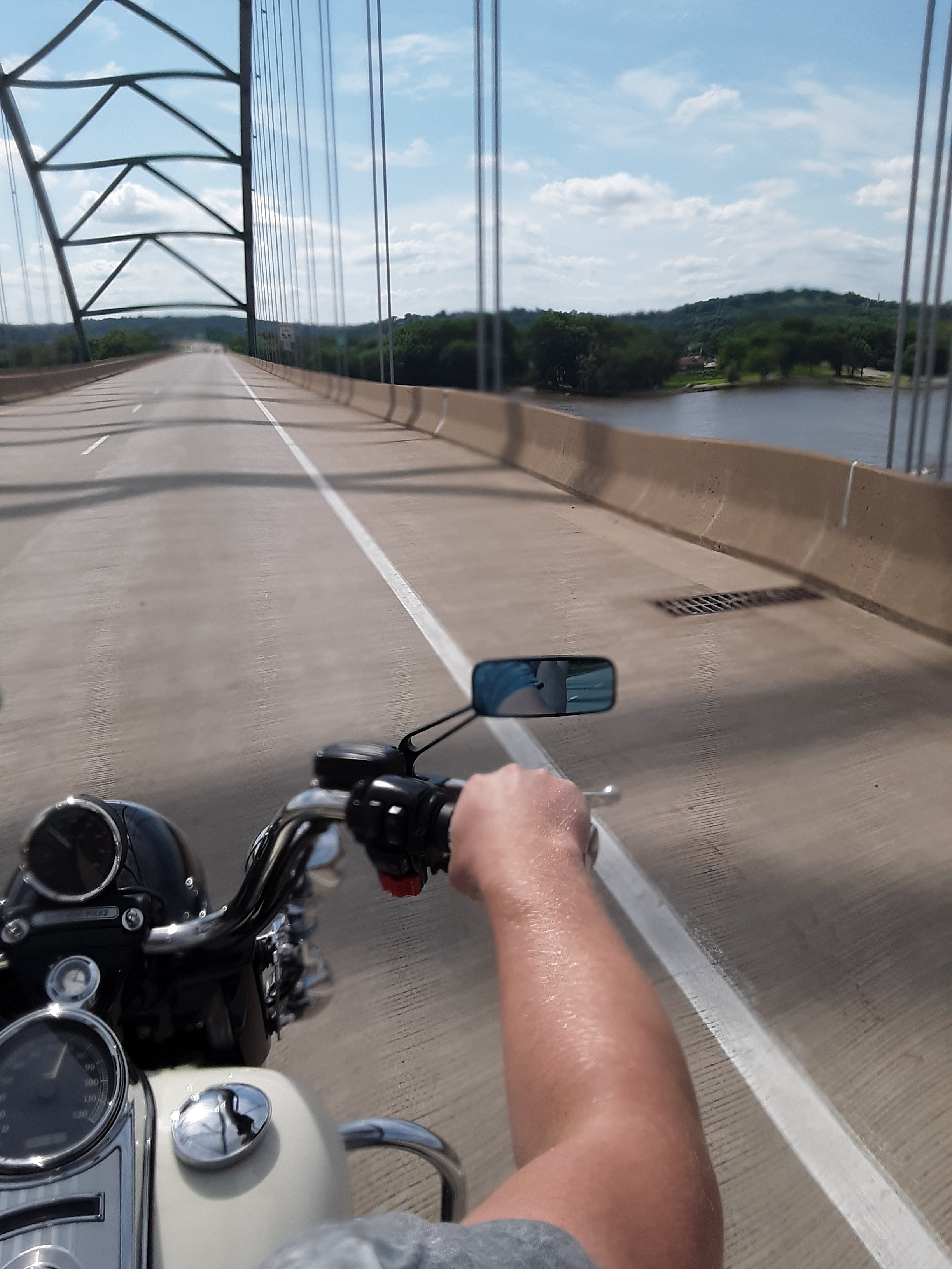 We crossed the Mississippi River, throwing up our hands like silly gooses as we cheered our accomplishment. Dubuque, here we come.